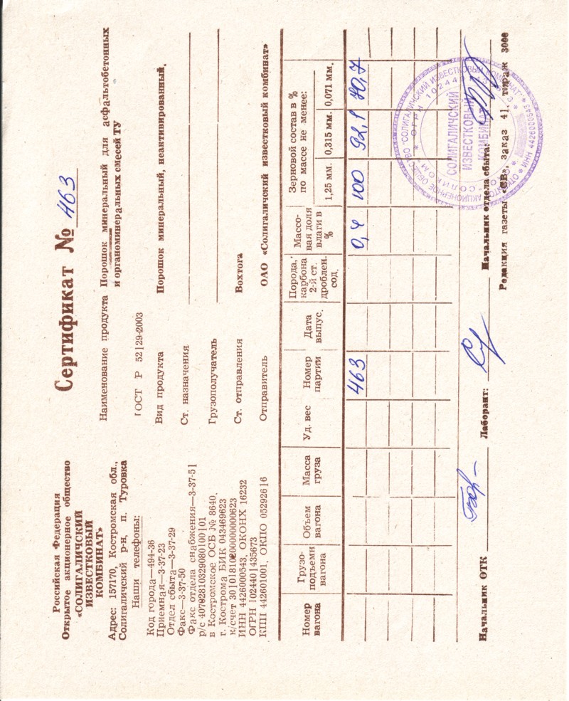 Порошок минеральный неактивированный для асфальтобетонных и органоминеральных смесей | ГОСТ Р. 52129-2003 | № 0504164 от 30.05.2012 г. Посмотреть | Сертификат Посмотреть | Сертификат Посмотреть | Фасовка в МКР или насыпью в ж/д транспорт, автотранспорт | Прайс лист |